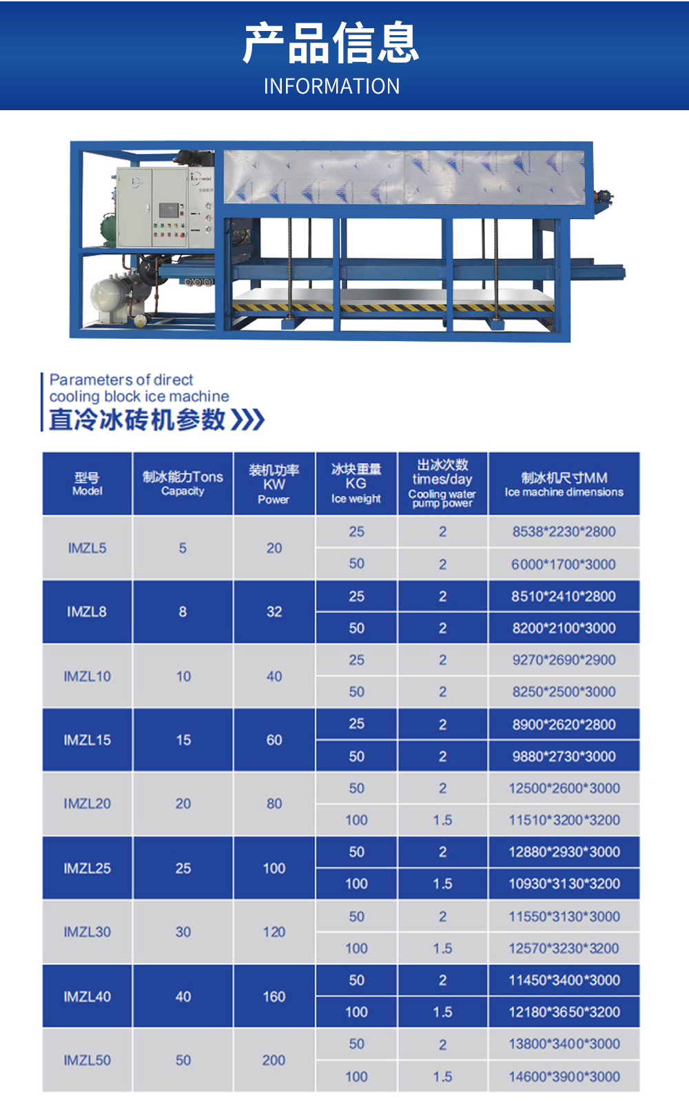 直冷冰磚機(jī)是一款冰磚(冰塊)生產(chǎn)設(shè)備,直冷冰磚機(jī)蒸發(fā)器采用導(dǎo)熱的鋁合金材質(zhì),與制冷劑直接換熱,凍結(jié)溫度低, 制冰速度快,且冰塊融化速度慢。直冷冰磚機(jī)自動(dòng)化程度高,自動(dòng)制冰、自動(dòng)補(bǔ)水、自動(dòng)脫冰,全自動(dòng)化,無(wú)需人工操作。直冷冰磚機(jī)冰塊干凈衛(wèi)生,可達(dá)到食用標(biāo)準(zhǔn)。直冷冰磚機(jī)冰模長(zhǎng)期使用無(wú)需更換,產(chǎn)品模塊化設(shè)計(jì),操作簡(jiǎn)單,占地面積小,安裝方便,現(xiàn)場(chǎng)接水接電即可制冰。