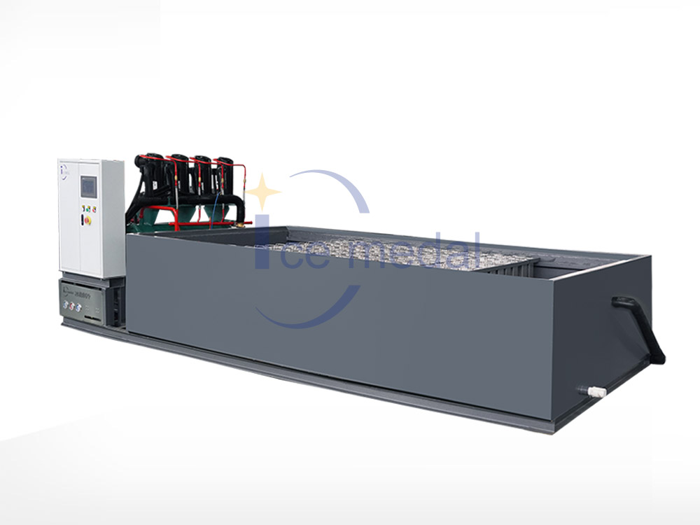 塊冰機(jī)又名冰磚機(jī),是制冰機(jī)中的一種,可分為直冷式塊冰機(jī)、鹽水式塊冰機(jī)、直冷集裝箱式塊冰機(jī)、鹽水制冰集裝箱式塊冰機(jī)。所制出的冰塊是冰類產(chǎn)品中外形尺寸大,與外界的接觸面積小,不容易融化??筛鶕?jù)不同要求粉碎成各種形式的冰塊。適用于冰雕、混凝土降溫、隧道降溫制冰機(jī)、冰塊儲(chǔ)存海運(yùn)、海上捕撈等。 粉碎后可以用于所有用冰的場(chǎng)所。但冰經(jīng)過(guò)粉碎后,會(huì)部分融化,冰量損耗。冰塊可以分為透明冰塊、乳白色冰塊和彩色冰塊。塊冰的尺寸可根據(jù)冰桶的大小進(jìn)行定制。