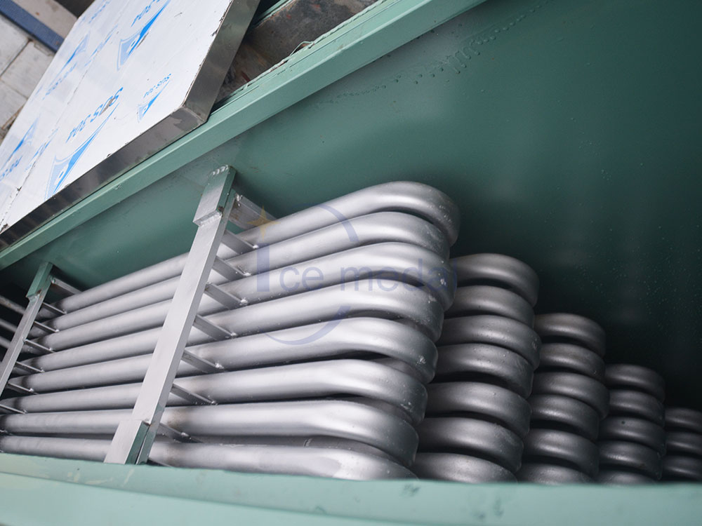 塊冰機又名冰磚機,是制冰機中的一種,可分為直冷式塊冰機、鹽水式塊冰機、直冷集裝箱式塊冰機、鹽水制冰集裝箱式塊冰機。所制出的冰塊是冰類產(chǎn)品中外形尺寸大,與外界的接觸面積小,不容易融化??筛鶕?jù)不同要求粉碎成各種形式的冰塊。適用于冰雕、混凝土降溫、隧道降溫制冰機、冰塊儲存海運、海上捕撈等。 粉碎后可以用于所有用冰的場所。但冰經(jīng)過粉碎后,會部分融化,冰量損耗。冰塊可以分為透明冰塊、乳白色冰塊和彩色冰塊。塊冰的尺寸可根據(jù)冰桶的大小進(jìn)行定制。